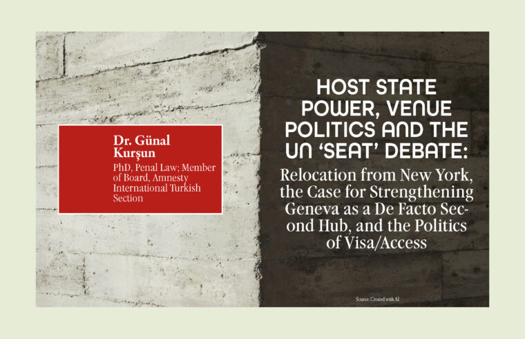 The United Nations Headquarters in New York is not merely a physical site but a political and legal infrastructure shaping access, legitimacy, and the everyday ecology of diplomacy. This article evaluates whether relocating the UN ‘seat’ away from New York is feasible in the short to medium term, and it maps the principal arguments for and against relocation. It then advances a more plausible institutional pathway: strengthening Geneva (UNOG) as a de facto second hub to enhance resilience and reduce exposure to host state leverage, especially in visa and access disputes. The discussion is grounded in the 1947 UN–US Headquarters Agreement and in the 2025 episode in which Palestinian President Mahmoud Abbas was unable to obtain a US visa and the General Assembly authorized a video address.