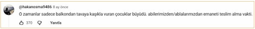 [10] @hakanosma9486, “O zamanlar sadece balkondan tavaya kaşıkla vuran çocuklar…,” yorum, YouTube video, 26 august 2022, https://www.youtube.com/watch?v=AP58_bBa4IQ